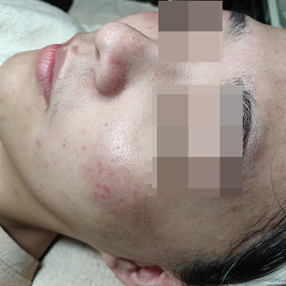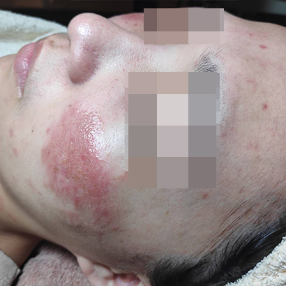 茹這客人一開始來之前就已經有在看皮膚科醫生了,醫生對她說是酒糟性皮膚炎,
